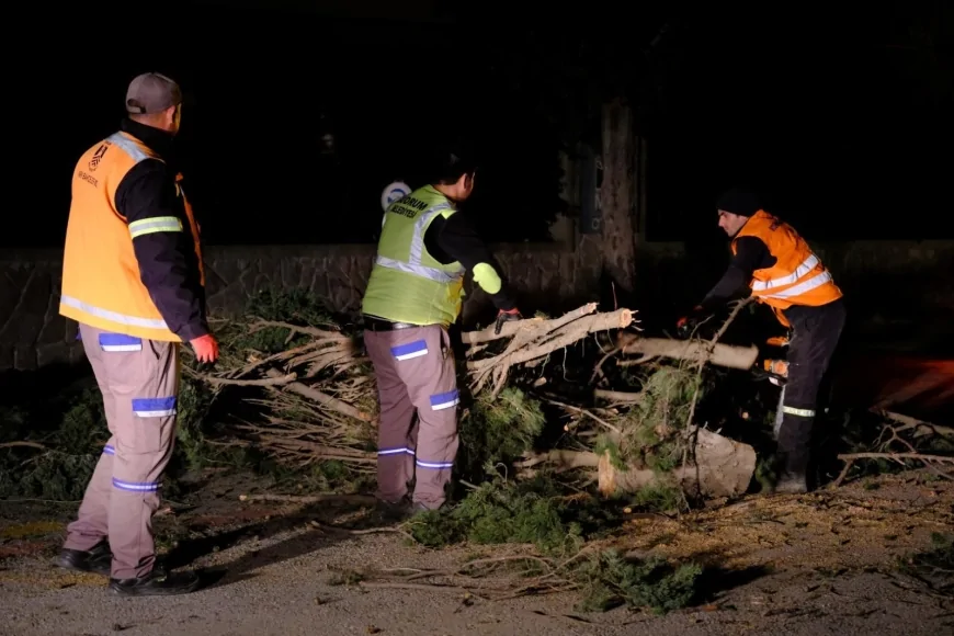 Fırtınanın bilançosu gece saatlerinde netleşmeye başladı. Kentin farklı noktalarında toplam 80 ağaç devrilmesi ihbarını değerlendiren belediye ekipleri, motorlu testereler ve iş makineleriyle devrilen gövdeleri parçalayarak yollardan temizledi. Bazı bölgelerde ağaçların elektrik tellerinin üzerine devrilmesi sonucu kopmalar ve enerji kesintileri yaşandı. Bu noktada tehlikeyi önlemek adına AYDEM ekipleriyle tam bir koordinasyon içinde çalışan belediye personeli, elektrik akımının kesilmesinin ardından ağaçları güvenli bir şekilde kaldırdı. Bu titiz çalışma sayesinde olası yaralanmaların ve daha büyük maddi hasarların önüne geçildi.